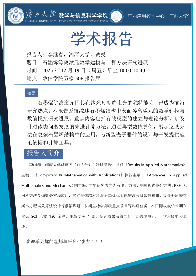学术报告:石墨烯等离激元数学建模与计算方法研究进展