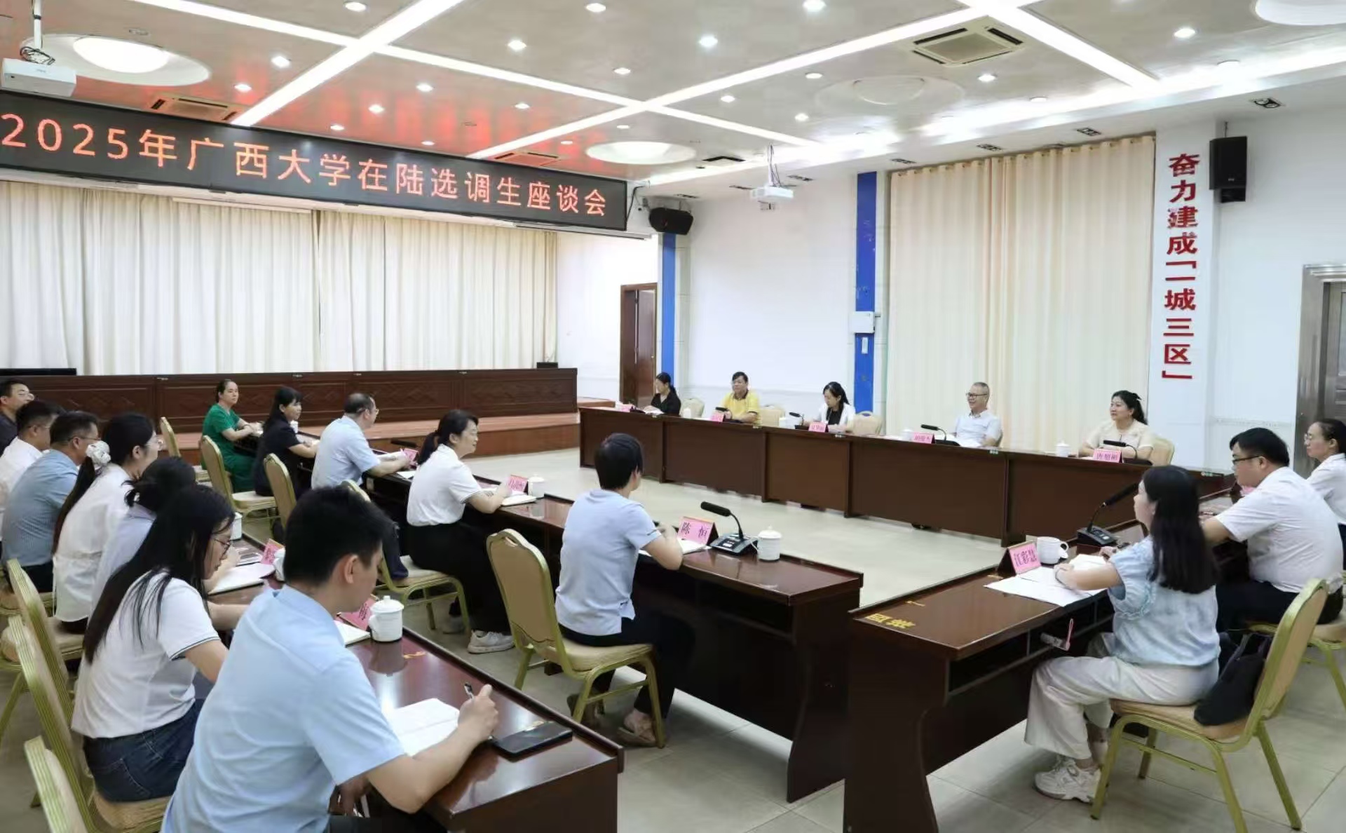 为贯彻落实校党委关于选调生“君武青苗行动”的工作部署,9月28日-29日,院党委书记吴华丽带队赴玉林市陆川县开展选调生调研工作,召开选调生代表座谈会,到沙坡镇实地走访选调生代表。陆川县委书记梁伟参加座谈会并作为选调生代表作重点发言,座谈会由陆川县委常委、组织部部长王清萍主持,我校在陆川县工作的14名选调生代表参加座谈会。