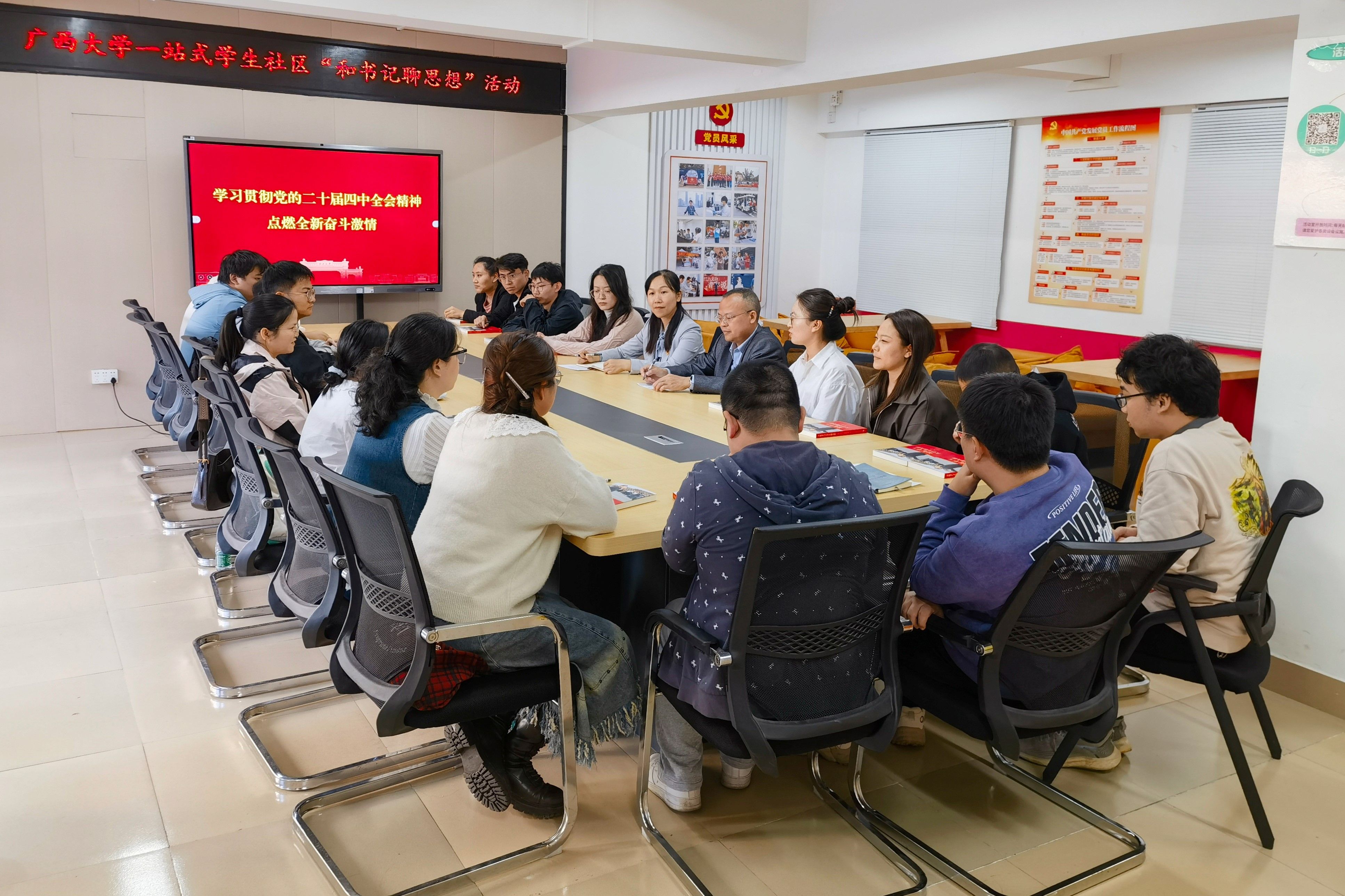 为深入学习贯彻党的二十届四中全会精神,激励太阳成官网博士生潜心科研、奋发进取、挺膺担当,11月12日下午,院党委书记吴华丽在西21栋学生一站式社区与太阳成官网18名博士生代表共同学习党的二十届四中全会精神,并进行座谈交流。院党委副书记、纪委书记石志刚主持座谈会。座谈会前,吴华丽向与会同学一一赠送了《习近平与大学生朋友们》。